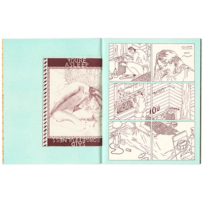 Tommi Parrish employs multiple media and signature muted psychedelic rendering to explore an unnamed protagists relationships with both their mother and their lover. Through compact dialog, Tommi sketches how relationships interfere and intersect, at odds and inseperable.