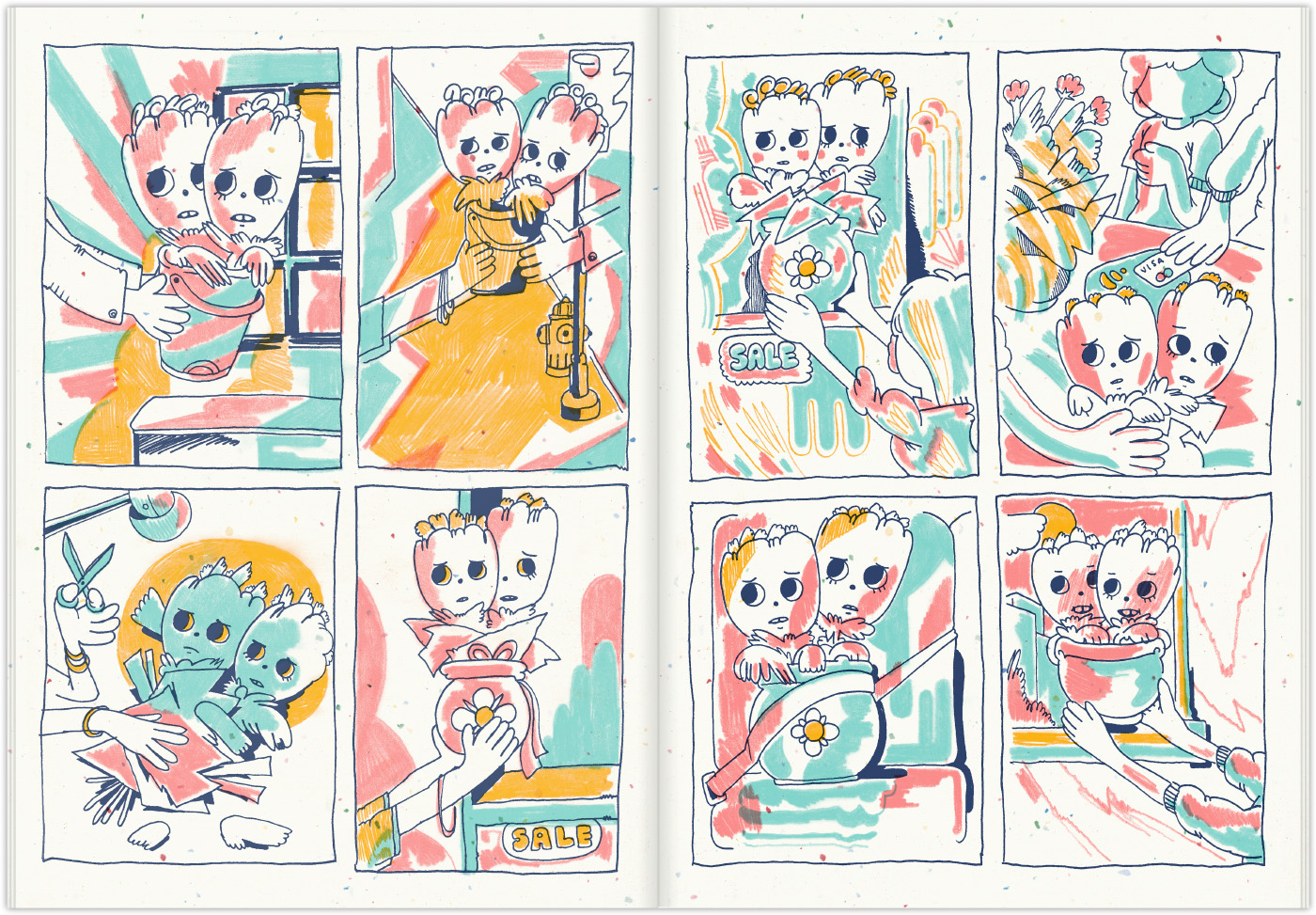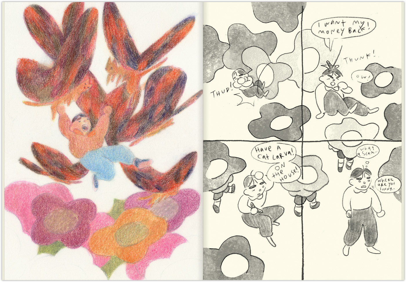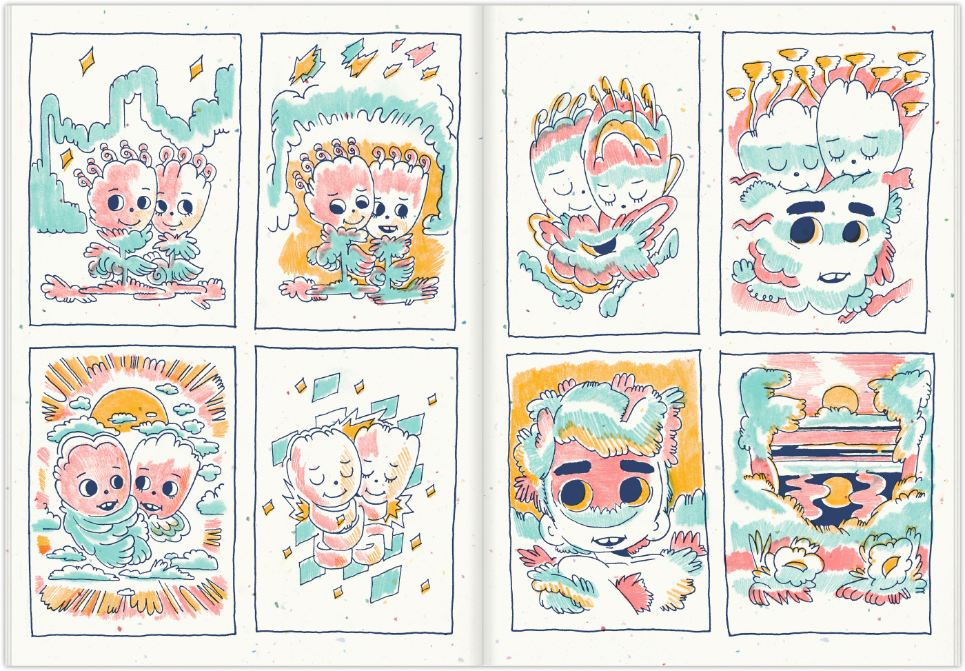 "I Feel It Starts Again is a story about flower dreams, written and drawn during the isolation in Saint Petersburg. I watched days and months go by and fantasized about being a flower, enjoying sun, wind and rain. It was some sort of meditation during the process of adjusting to new reality and accepting my new life - and the most transcendent experience I ever had while making comics."