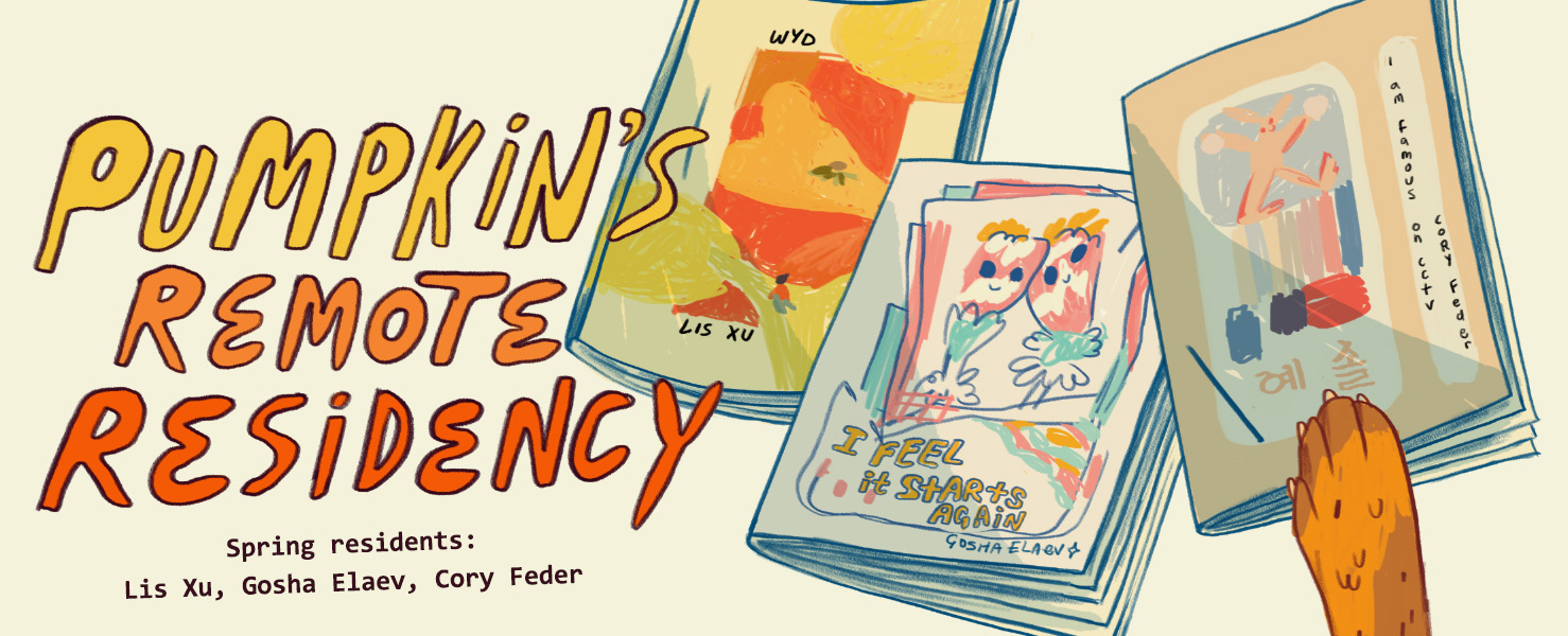 This package collected the three mini-comics produced by the residents of first installment of Pumpkin's Remote Residency, which ran between April and June 2020. Each artist worked independently to produce their own book. Scroll down to read the about the artists and their thinking in producing their projects.