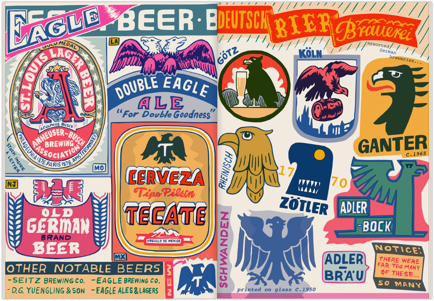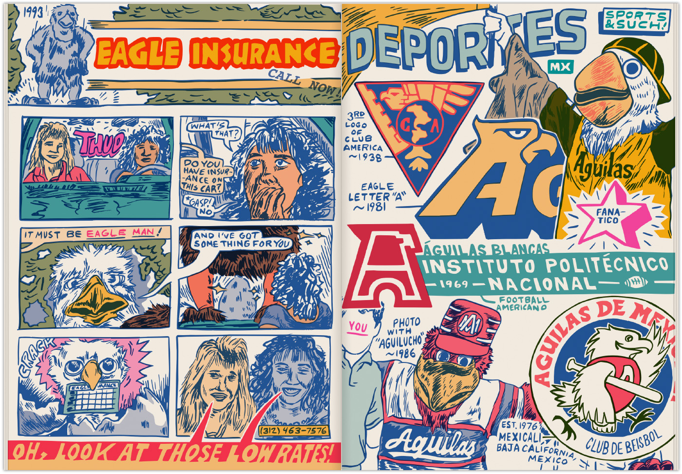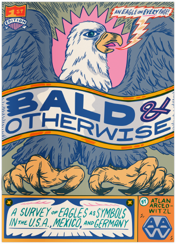 Bald & Otherwise is an exploration of the eagle as a visual form. They appear on objects you could hold in the palm of your hand, emblazon the side of semi-trucks, and represent organizations that have nothing to do with animals whatsoever! In these pages you'll discover how many times you can re-hash an image and to what ends. You might engage out of curiosity, for research, or just for the fun of it! However, once you start seeing these predatory fowl everywhere, you know the curse of the eagle eye has set in. (NOTE: Eagle symbols redrawn inside this book have their origins in Mexico, Germany, and the USA. They are utilized for educational and entertainment purposes simultaneously).