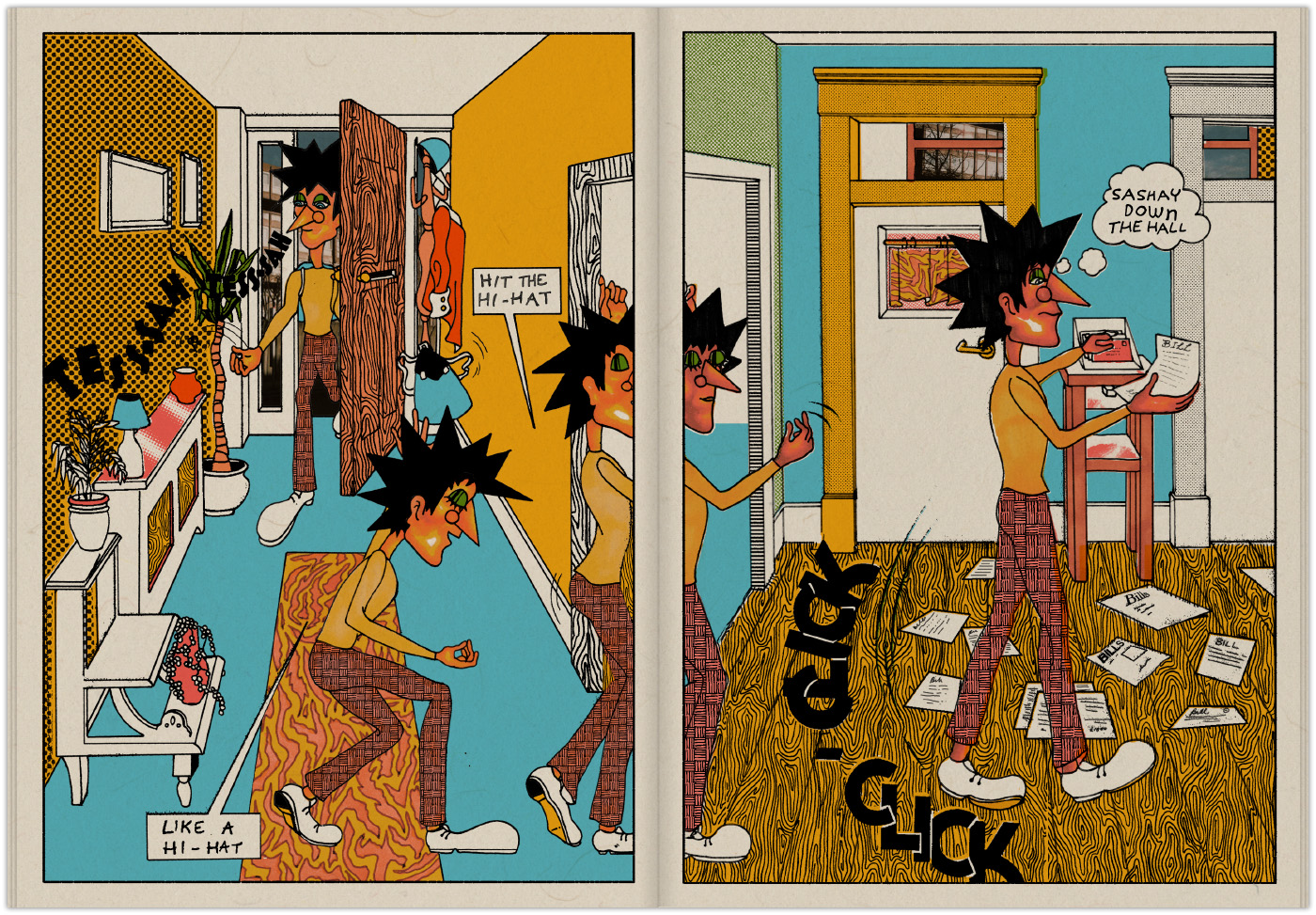 I am an artist living and woking in London. I studied Graphic design but drawing has always been a natural extension of what I wanted to do and a consistent habit. The imagery I make usually centres on the mundane with the tinge of something being slightly off. I like to invent scenes within a room, like peering into someones brain. More often than not my characters are in the midst of an existential crisis. My influences are a jumble of eras from as far back as the 18th century however I always come back to the 60s and 70s because the imagery feels so liberated and surreal. This is what initially led to the cartoon style I have developed.